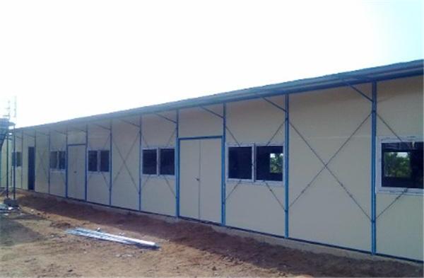 防火防爆彩板活動房是一種以輕鋼為骨架,以夾芯板為圍護材料,以標準模數系列進行空間組合,構件采用螺栓連接,全新概念的環保經濟型活動房屋。用于建筑工地臨時建設設施及大跨度展廳、售樓部、活動崗亭、移動超市等。